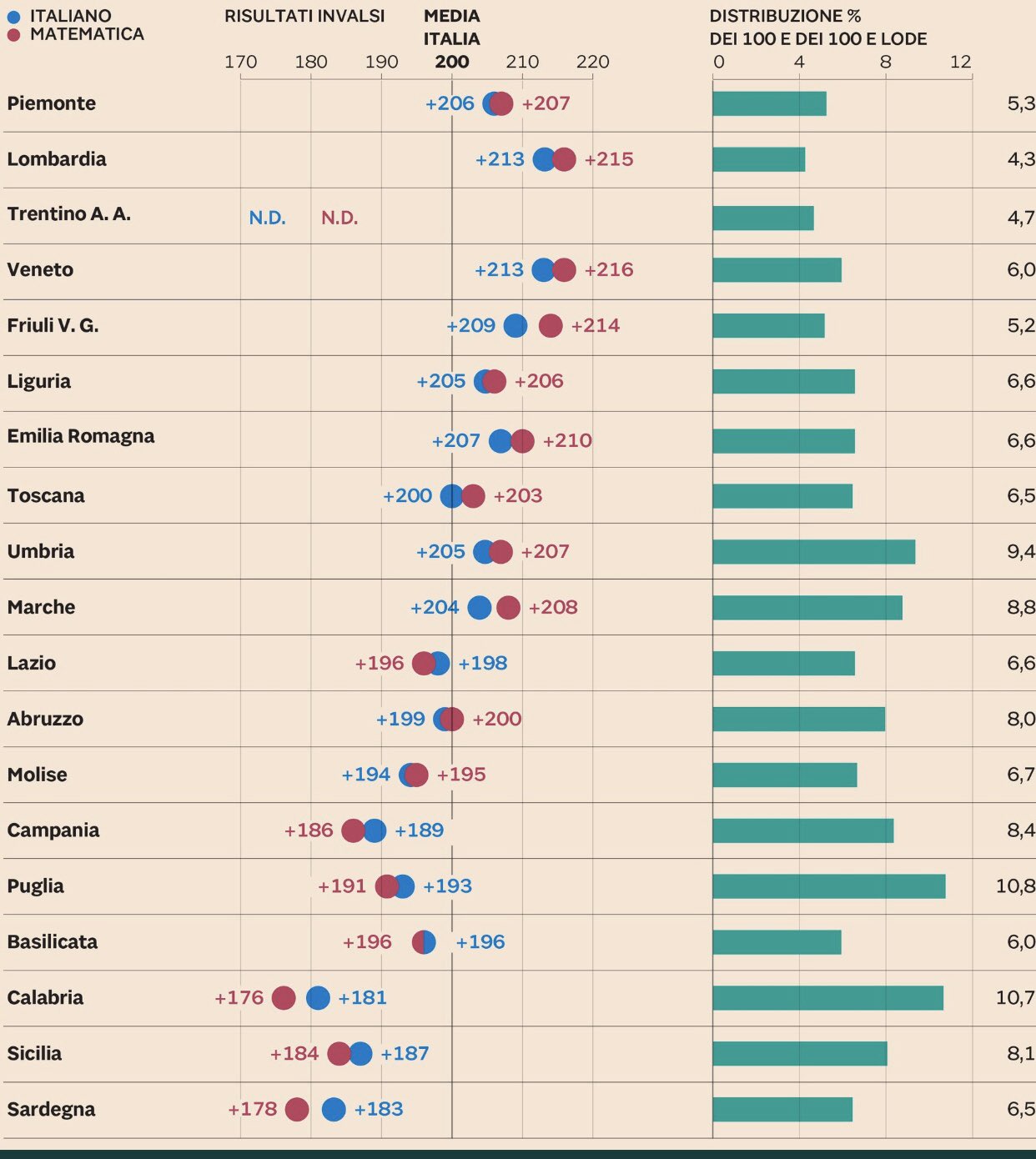 Meravigliosa la correlazione tra 100 e 110 e Lode e punteggi Invalsi.
