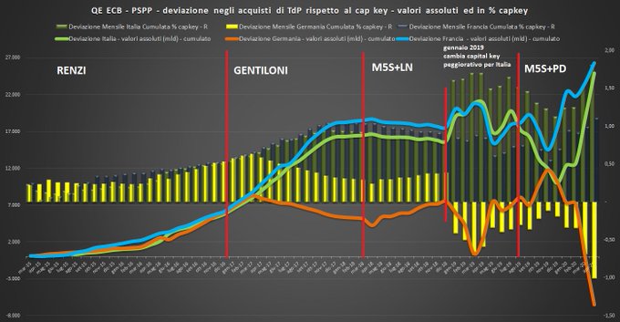 Se fra 3 mesi la BCE decide di dare ragione a loro ed equiparare le barre verdi chiaro (Italia) e gialle (Germania) vorrà dire che ci troveremo alla canna del gas. E con noi i francesi.
