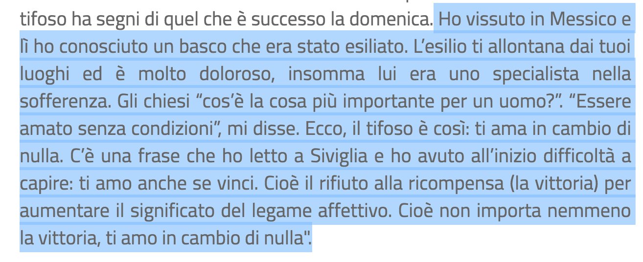 Se non tifi nessuno, non puoi capirlo il ragionamento.
