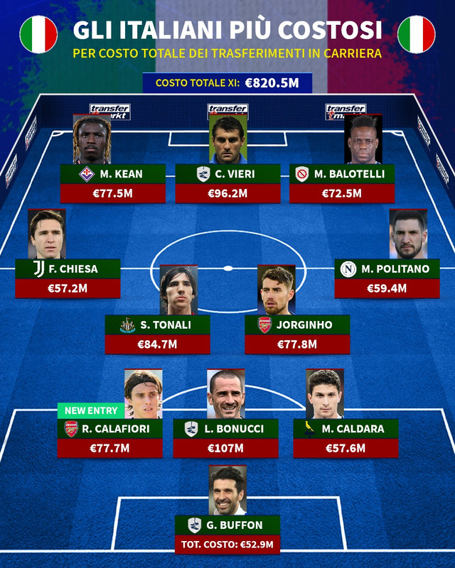 buffon con un solo trasferimento (parma->juve) ha movimentato 52 milioni e poi spiccioli negli spostamenti di fine carriera