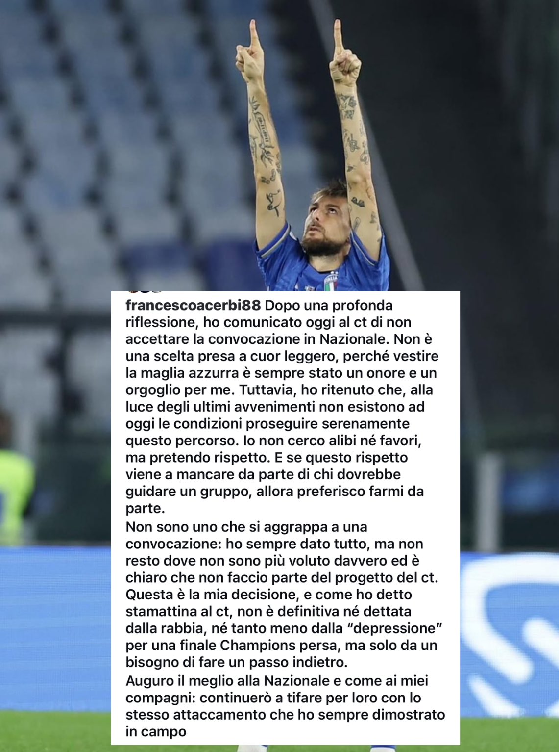 Acerbi ce l'ha col CT, l'ha praticamente scritto nel comunicato.
