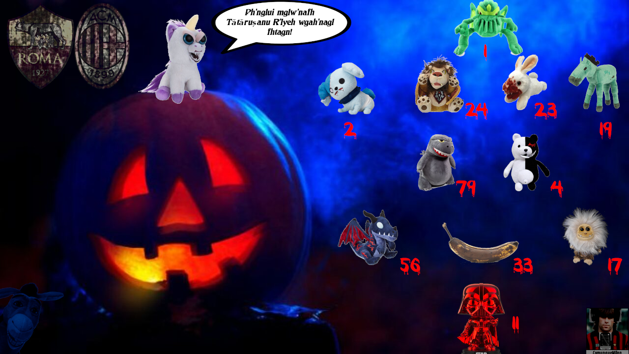 Anche oggi ero in servizio per creare la grafica della formazione. Diciamo che il fatto di giocare il 31 ottobre ha ispirato la mia parte demenziale ancor più del solito: