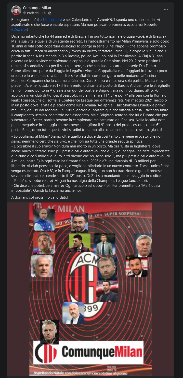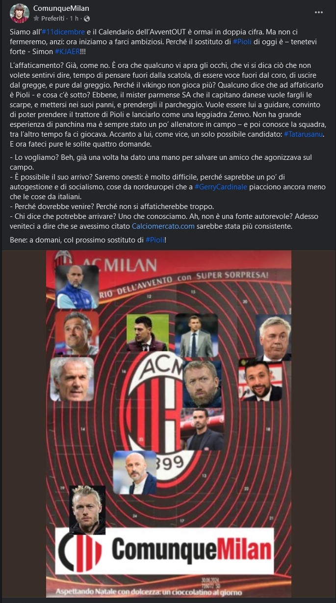 Se vuoi ci aggiungo che è colpa di Pioli.