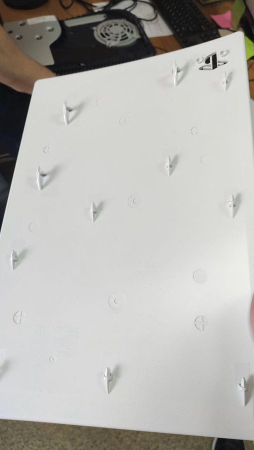 nel leak la cover bianca è in primo piano ed enorme, la console è lontana, appoggiata sul tavolo (quindi in prospettiva sembra piccola, invece mi sembra di capire che tu pensavi fosse solo la parte alta della console che spunta da dietro la cover?) e girata di 90°