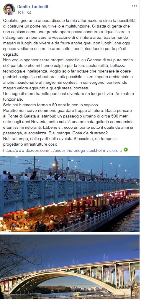 riportiamo l'attenzione a Toninelli e il ponte da vivere, paragonando quello di Instabul. La situazione è un po' diversa