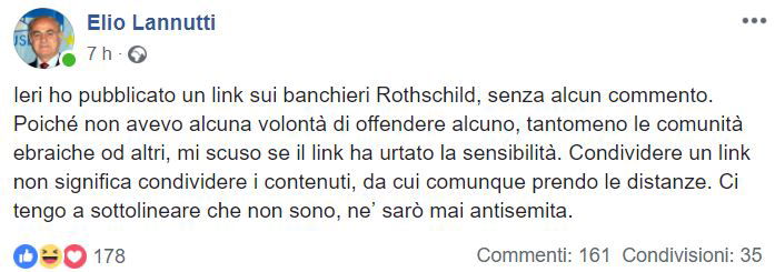 Notare la somiglianza della risposta di Lannutti con la risposta tipica dell'AF sovranpopulista