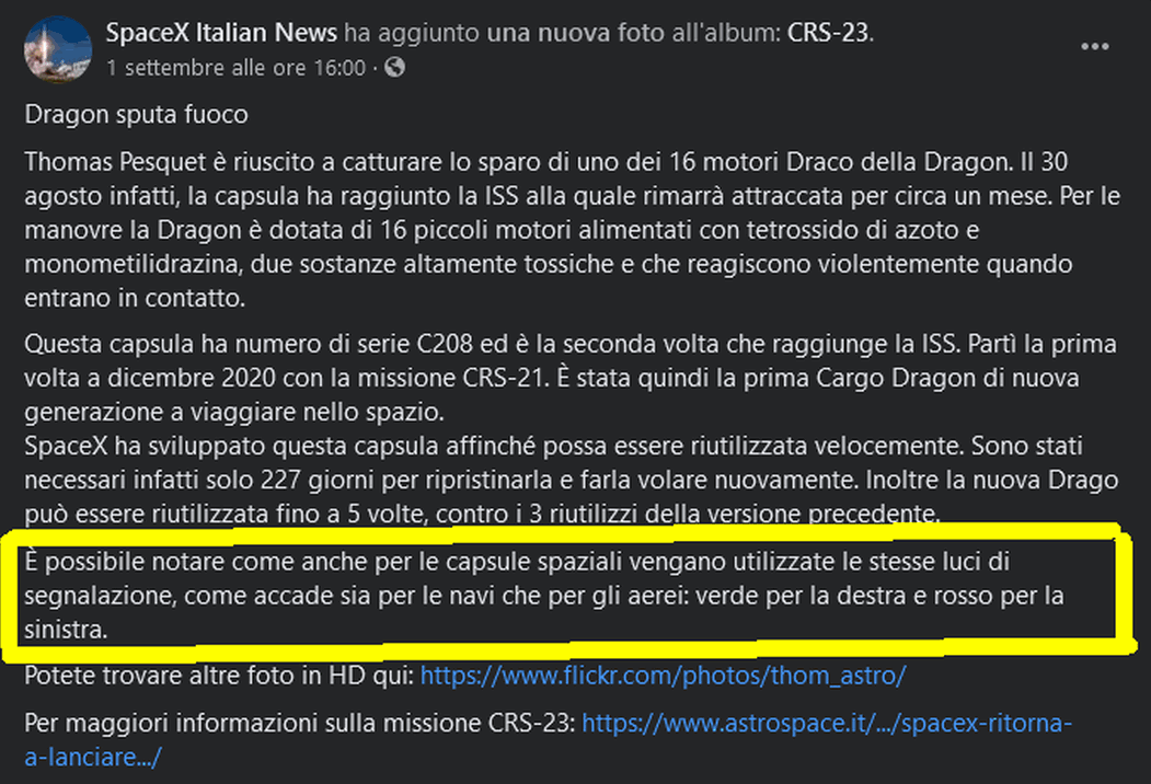 Cmq: La capsula trasporta l’esperimento, tutto italiano, "ReADI-FP", realizzato nei laboratori della società consortile di Napoli ALI Aerospace Laboratory for Innovative components S.C.a r.l. Ieri è arrivata la conferma ufficiale che l’esperimento è entrato in fase operativa e permetterà di studiare il problema dell'osteoporosi degli astronauti, consentendo il miglioramento delle terapie osteoporotiche qui sulla Terra. Il progetto è stato anche ingegnerizzato da ALI, dalla storica società spaziale MARSCENTER e ideato dal team guidato dal prof. Geppino Falco del dipartimento di Biologia applicata dell’Università napoletana Federico II.