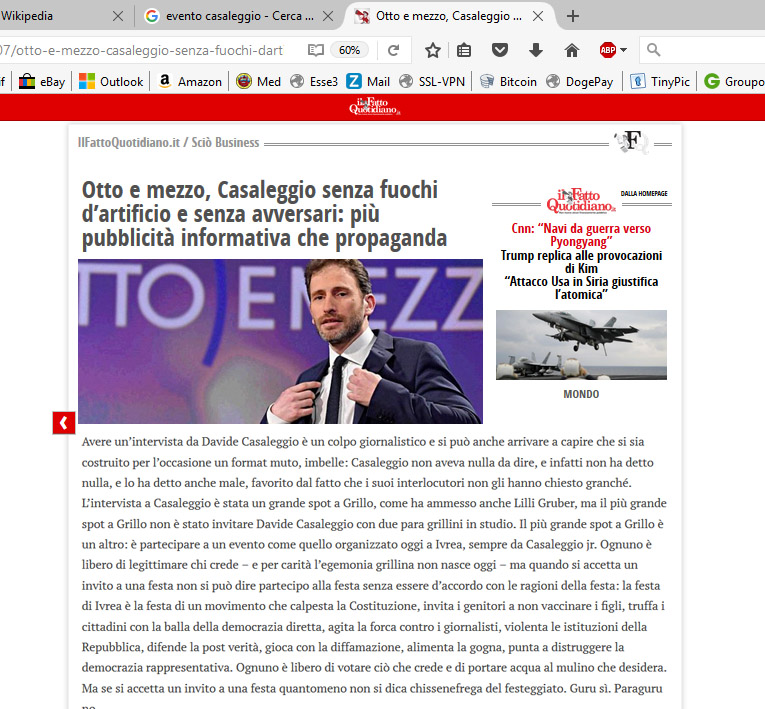 Quell'articolo parla della trasmissione otto e mezzo dove è stato intervistato, che nulla a che vedere con l'evento.