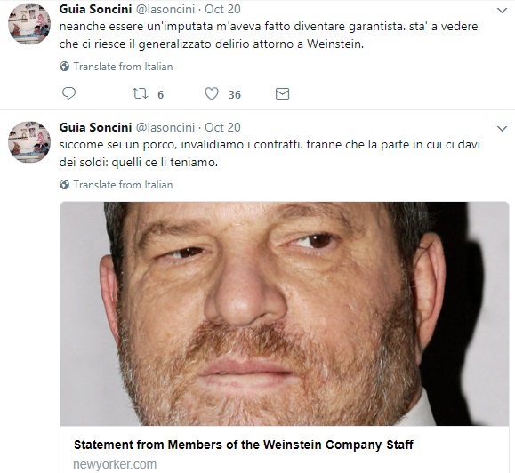 Guia Soncini (born October 19, 1972) is an Italian journalist, columnist and writer, writing amongst others for La Repubblica and Gioia!sjw spotted.This, in a country that has a total of zero national newspapers edited by women and zero female columnists in its main national papers.