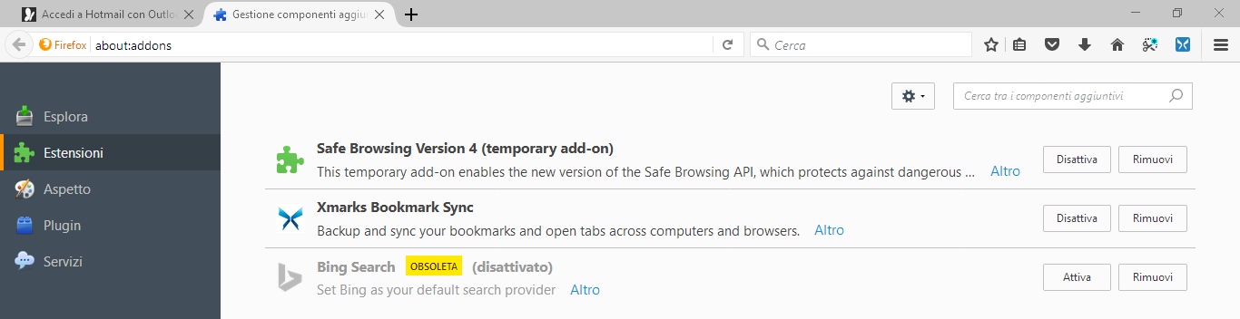 succede che da non so che aggiornamento, i componenti aggiuntivi mi appaiano come "obsoleti" nella apposita scheda. Fotterebbe sega, senonchè Xmarks che per me è vitale è anche l'unico a non andare.