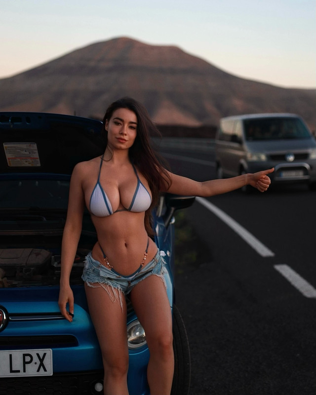 Lei e l'auto sono vere, lo sfondo o è IA o e un proiettore su un telo :sisi: