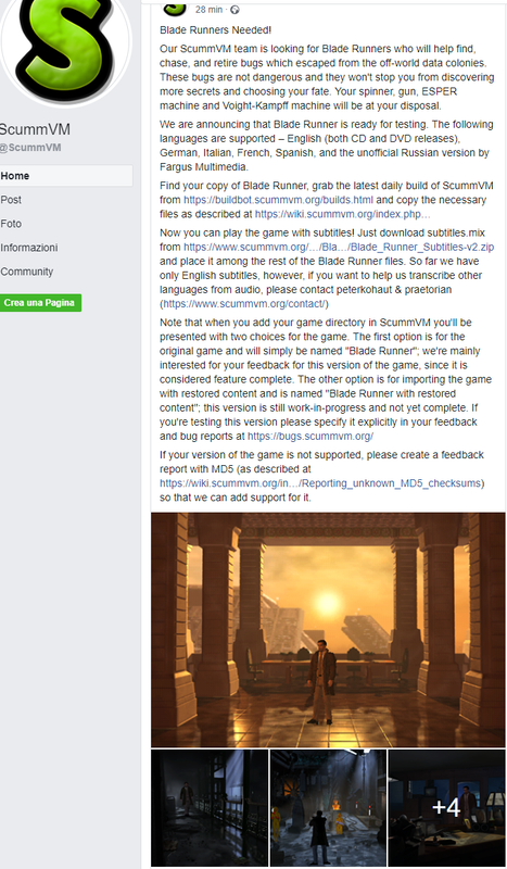Discussione: BLADE RUNNER su SCUMMvm - HELPATEMI a capire come funziona
