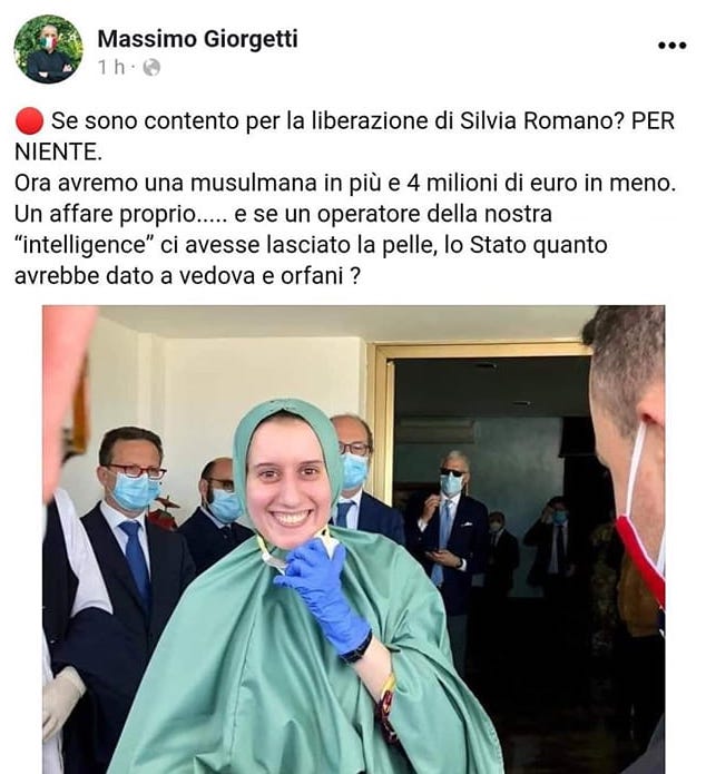 Cmq nessuno se la ricordava, all'improvviso "toh abbiamo riportato in Italia sta qua che è andata di testa sua e sconsigliata in Somalia, ora è tornata dicendo che si è convertita e sposata, la permanenza gradevole anche se limitata".