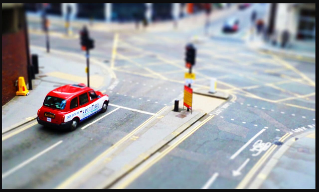 In questo caso semplicemente si tratta di un dof esagerato che da un effetto miniatura a tutto, infatti la tecnica tilt-shift viene anche usata nella fotografia reale per dare un effetto miniatura a cose di dimensioni reali, principalmente con un fuoco cortissimo.