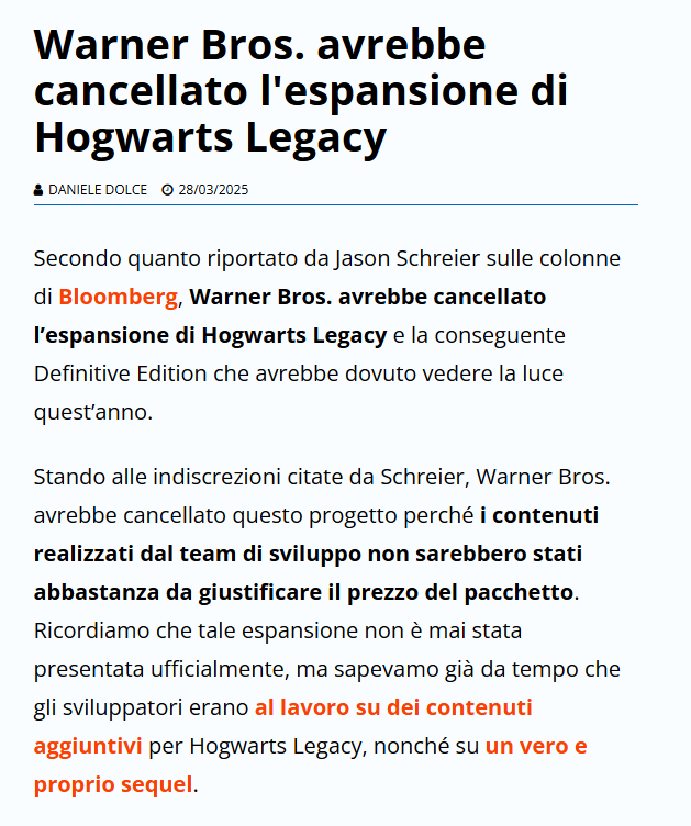 Io al netto di TUTTO quello che si voglia dire, sono molto curioso del seguito di Hogwarts Legacy e continuo a considerare il gioco un ottimo gioco (non rivoluzionario etc ma quando mai doveva esserlo) e mi piace come hanno portato il mondo di Harry Potter nei videogames, secondo me facendo un ottimo lavoro per chi come me ha adorato i libri (I LIBRI sia chiaro).