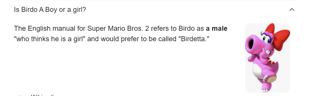 Cmq non vorrei rivelarti l'irrivelabile, ma esiste da una vita quel personaggio ed e' da sempre un cross-dresser (o trans se vuoi, poi le classificazioni precise le lascio al mondo), quindi Nintendo avanti come sempre