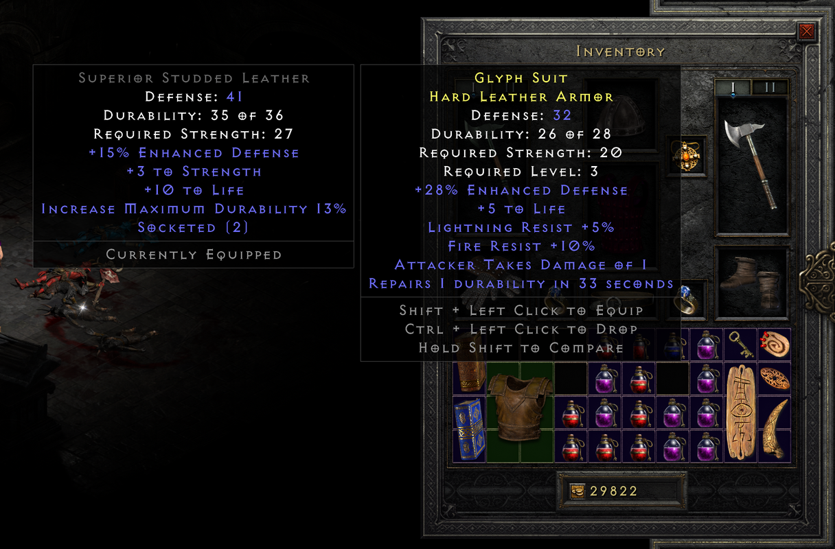 Io alla fine facendo metti/togli con la finestra delle specs del character a sinistra, mi baso un po' sui valori risultanti che vedo la', e quindi mi sembra sia decisamente meglio tra le due l'armatura con il valore di difesa piu' alto e il nome meno altisonante.