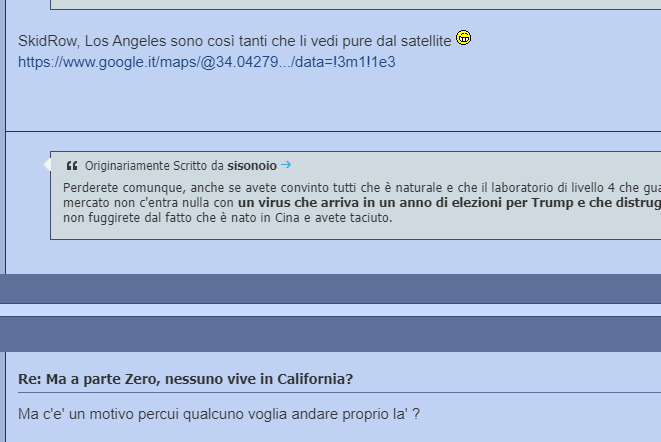 Ma io fisicamente ne ho visto pocoperò GTA V non era bello? Altro gioco recente molto molto molto famoso e pluripremiato su PS4 non era bellissima un'ambientazione da quelle parti? E dei film e serie ambientati in California? Poi ovvio che ci sono i barboni, ci sono anche nella stazione di merda della mia città del cazzo