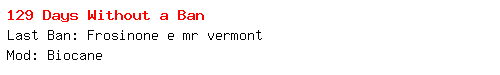 comunque il titolo del topic lo trovo disturbante :sisi: ogni volta che apro il forum mi da l'idea che ne abbiano bannato un altro, cosa che poi non è vera, quindi oltre a creare allarmismo è pure falso e di questo passo invece di cercare d'infondere alla comunità una sorta di sforzo di gruppo per non finire bannati, si finisce col fregarsene visto che tanto il contatore è sempre a zero e non viene più aggiornato :nono: