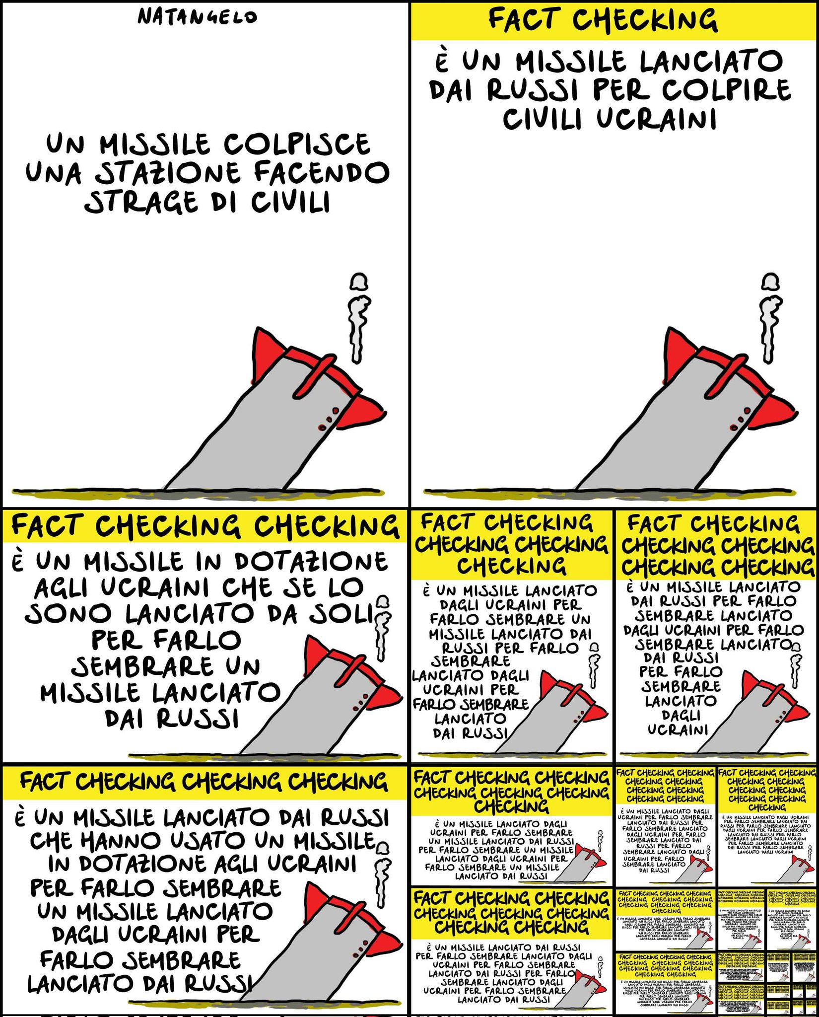 Scrive oggi Travaglio: "Poi si scoprì che i famosi “boia di Bucha” non erano mai stati lì. E molti osservano che i cadaveri ai bordi della strada sono privi di sangue, in condizioni incompatibili con una permanenza di quasi un mese, a distanze troppo regolari per essere morti lì. Altri notano l’assurdità di ordinare contemporaneamente di occultare i cadaveri nelle fosse comuni e di esibirli in strada. Come scrivemmo il primo giorno, l’unica certezza è che quegli esseri umani sono morti, quasi certamente per mano russa, perché la guerra è questo... E chi è più bravo (o più creduto) sui media li usa a proprio vantaggio,mentre nasconde i propri (8 anni di orrori del nazi-battaglione Azov in Donbass chi li ha visti?)"