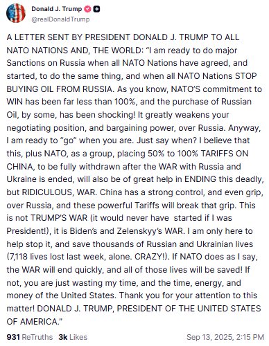 Arriva la risposta di Trump ai droni che sostanzialmente è "Non farò un cazzo per aiutarvi ed è colpa vostra" e ovviamente adesso Putin ne tira altri