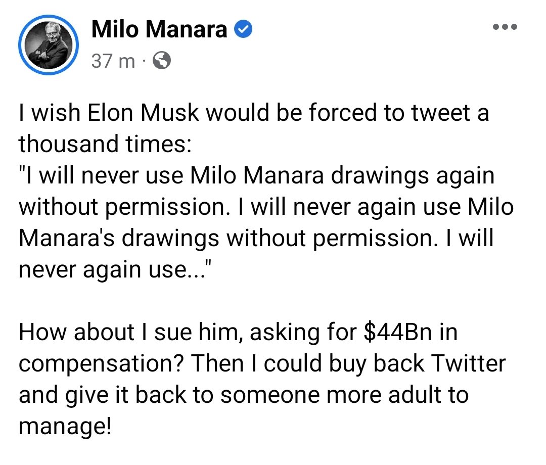 Divento sempre più miliardario e mi annoio inventandomi società filantropiche che non cambiano nulla (con le risorse che hanno certi miliardari potrebbero veramente cambiare il mondo) come fanno i miei amici Gates e Bezos....oppure compro Twitter e faccio il matto e me la spasso a guardare la gente che si incazza?