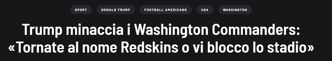 ma infatti è coerente, ha detto che il presidente non dovrebbe dire ai redskins di cambiare il nome e per questo devono riprendere quello originale