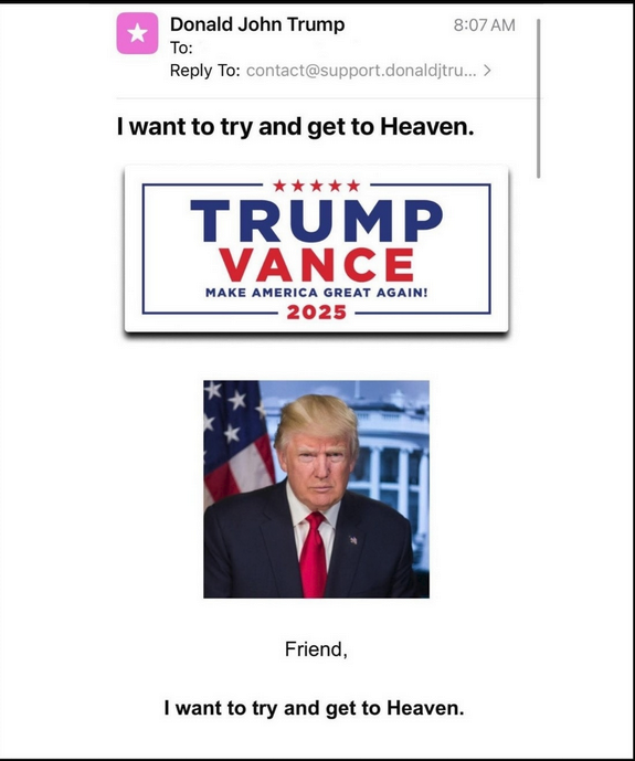 Ho parlato con alti esponenti del Dipartimento di Stato Americano e mi hanno confermato che la macchia in questione è dovuta al sellino bagnato del golf kart. Mi è stato anche confermato che al momento l'NSA e l'ICE stanno procedendo, con l'aiuto del NORAD e dell'NRA, ad identificare tutti coloro che diffondono questa foto e la commentano diffondendo ulteriormente fake news sulla salute DI FERRO del miglior POTUS di tutto il multiverso.