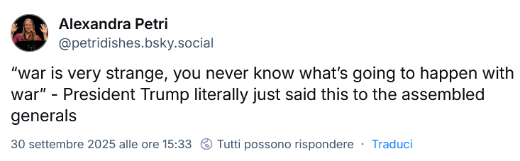 pare che nella riunione convocata da Hegseth siano stati invitati PER SBAGLIO anche un paio di generali russi e un paio di generali cinesi![]()