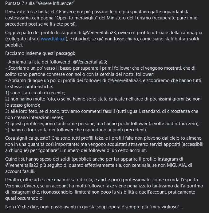 ❌ I follower del profilo Instagram @Venereitalia23 sono per la maggioranza falsi