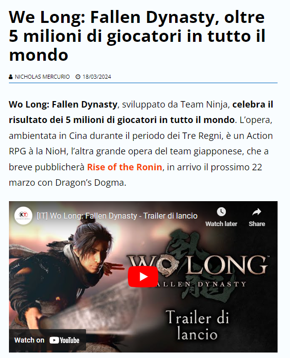 Wu Long Fallen Dynasty ho sconfitto oggi il primo boss, che mi andava di giocare sulla Xbox.