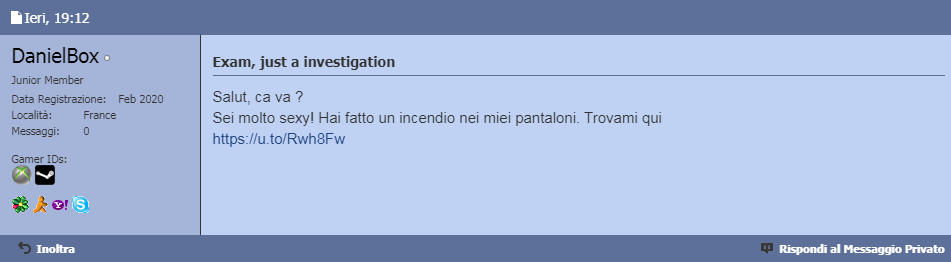 Da un po' di mesi vengo bombardato di pm dai bot. L'ultimo pm ricevuto![]()