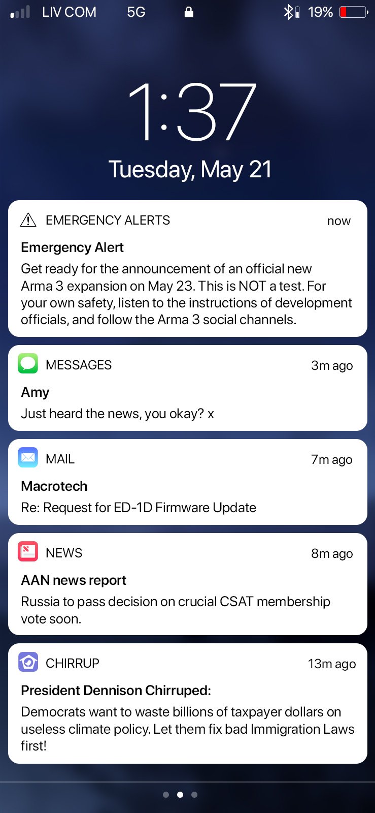 We have received multiple reports of unusual activity and have sent the development authorities to investigate. Please remain calm, be aware of your surroundings, and await tomorrow's announcement of a new official #Arma3 expansion. Thank you for your patience and cooperation.
