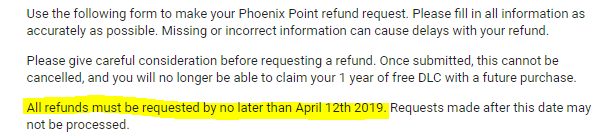 In ogni caso, dopo averci riflettuto, non chiederò il rimborso e per due motivi: il primo è che bisogna fornire ad un provider esterno i propri dati bancari (non ci penso nemmeno) ed il secondo che, nonostante la gestione schizofrenica e dilettantistica della community, i cambi di direzione artistica, le bugie e quant'altro, il gioco sembra comunque promettere bene (l'ultima BB mi ha positivamente colpito) e la voglia di giocare ad un 'nuovo X-COM' è troppo forte per lasciar cadere la speranza, arrivati a questo punto. Diciamo che sono pronto a scommetterci i 40 euro investiti, e per quanto riguarda Epic creerò un account 'farlocco' e lo userò solo per PP fino alla chiave GOG e poi solo per i giochi gratis...
