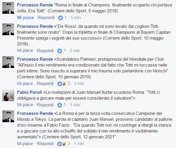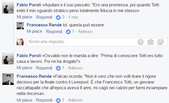 - polemica col giocatore X (es. Totti o De Rossi) che sfascia lo spogliatoio