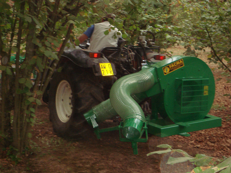 nella prima maniera si passa l'andanatore ventilatore,la sua funzione è quella di spostare le nocciole sparpagliate sul terreno livellato e raccogliere in filari stretti.