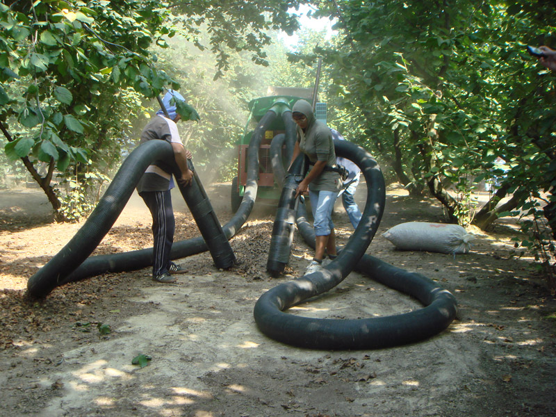 non c'è più bisogno di operatori col tubo in mano che aspirano a terra le nocciole,meno fatica e più produttività.