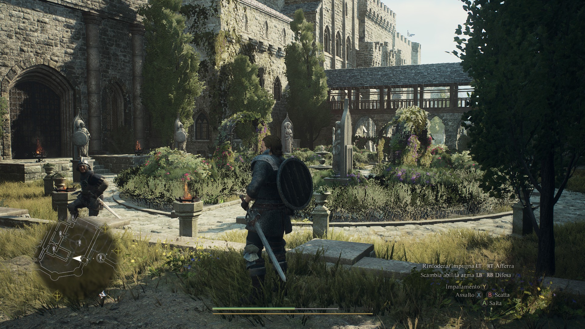 una delle prime missioni principali è un tizio con una comitiva che ti vuole scortare alla capitale :sisi: insomma l'ho seguito e fatto sta che il primo giro che mi ha fatto fare, è stato il giro della mela :asd: siamo usciti da una porta di un villaggio, per poi fare un maxi giro e rientrare da un'altra porta :bua: alla faccia dell'IA :bua: