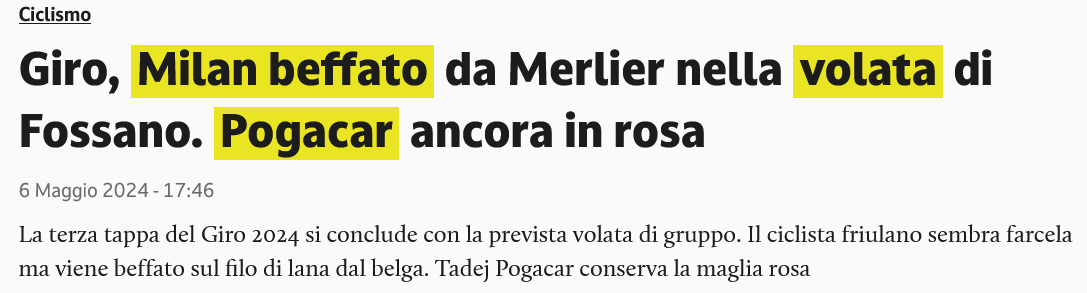 Comunque rinfreschiamoci le idee pensando ad altro. Per esempio, è partito il Giro, vediamo come sta and...