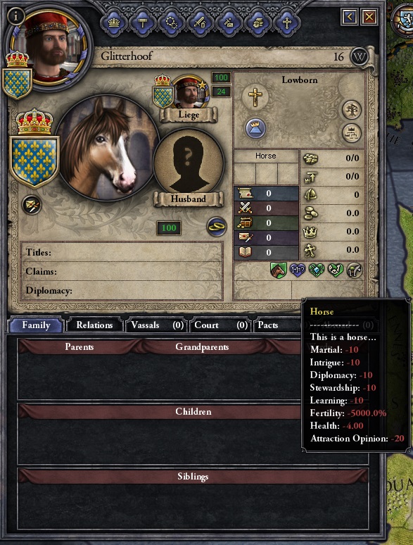 Ma a qualcuno di voi è mai capitato di avere come trait Lunatic e che all'improvviso il pg elegge come consigliere il suo cavallo???![]()